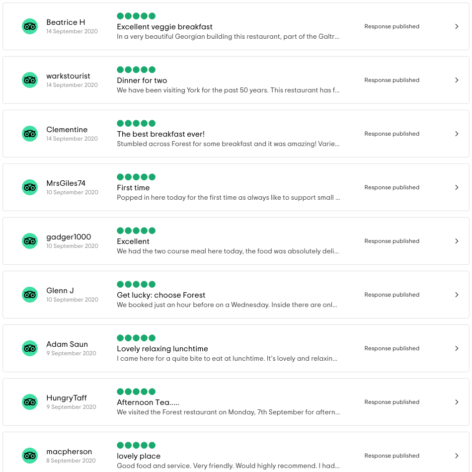 On a positive note (and please note that I’m writing this on the eve of the next government announcement!), we’ve fared pretty well since re-opening on 4th July. August was brilliant, both financially, but also with amazing feedback about Forest (our restaurant). September was also good, with lots of return guests and even more good feedback. I’m sure to tempt fate now, but our top 10 reviews on Forest’s TripAdvisor page are 5/5 glowing reviews!
